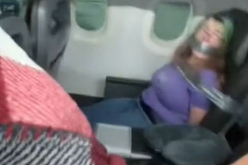Video yang tular di media sosial menunjukkan penumpang wanita tersebut dilekatkan pita pelekat pada mulutnya dan pada badan di tempat duduknya.