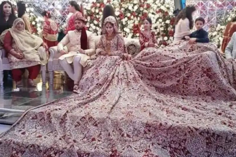 Nah, seorang pengantin perempuan di Pakistan benar-benar mengejutkan para tetamu di majlis perkahwinannya apabila mengenakan persalinan 'lehenga' seberat 100 kilogram ketika hari bahagianya.