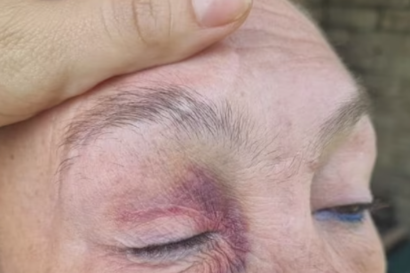 Mangsa, Collen Murphy, 50, mengalami bengkak dan lebam di muka dan mata dalam kejadian di sebuah pasar raya pada pukul 9 malam pada Ahad.