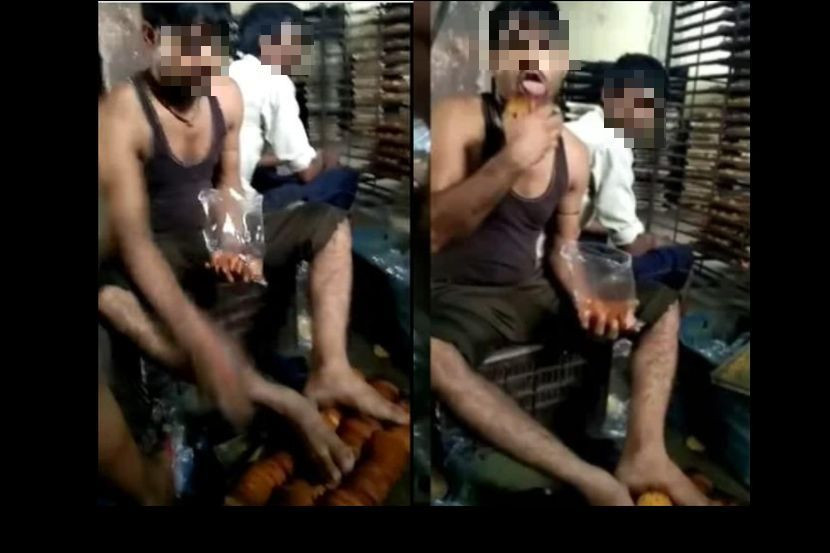 Salah seorang pekerja dilihat memasukkan roti kering, dan menjilat makanan tersebut.
