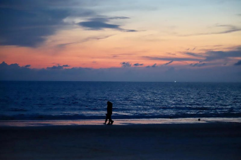 KEHADIRAN ramai pengunjung di pantai ternyata tidak diendandahkan pasangan ini.