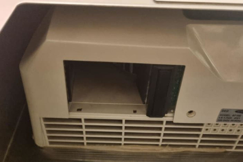 Alat pengering tangan tersebut (kiri) dikatakan tidak mempunyai penutup.