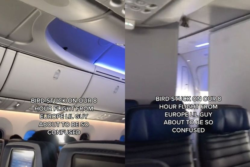 Seorang penumpang, Brooke Frazier yang menaiki penerbangan selama lapan jam dari Brussels, Belgium, menyaksikan burung kecil terbang di dalam kabin.