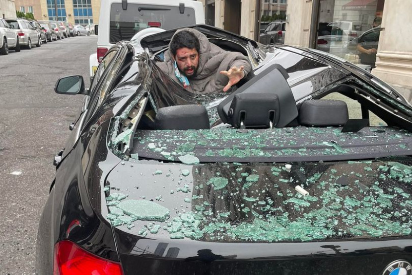 Ketika kejadian, lelaki yang tidak didedahkan identitinya itu terjatuh ke atas bumbung sebuah kereta berjenama BMW.