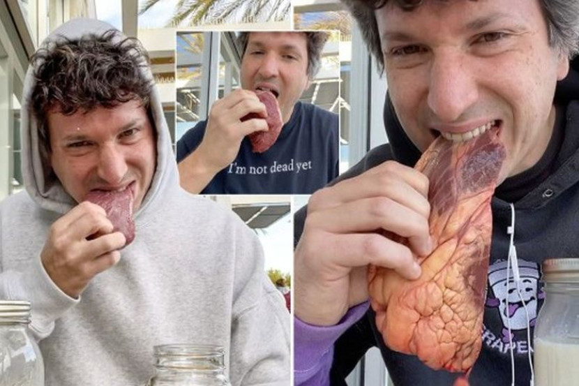 Lelaki ini memuat naik videonya memakan daging mentah setiap hari di akaun Instagram @rawmeatexperiment.