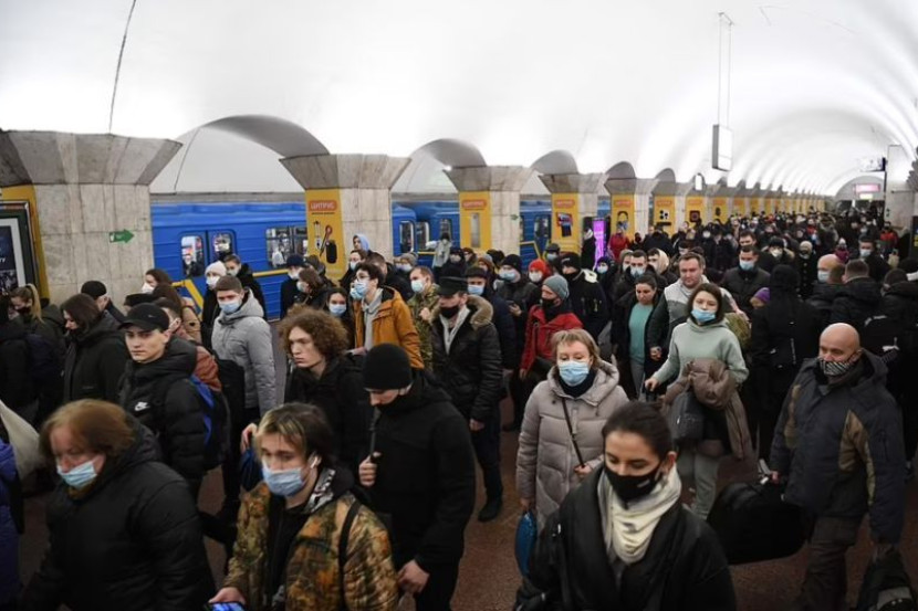 Stesen metro di Kiev turut menyaksikan orang ramai cuba menaiki kereta api untuk keluar dari bandar itu.