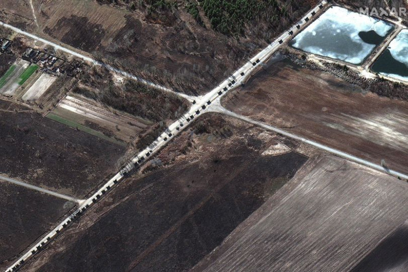 KONVOI secara besar-besaran dilakukan oleh tentera Rusia yang menceroboh sedang menuju ke Kyiv. Gambar yang diambil dari udara pada Isnin menunjukkan barisan panjang kenderaan tentera dalam perjalanan ke ibu negara Ukraine. Imej terbaharu itu menunjukkan konvoi kenderaan tentera sejauh 40 batu (64 kilometer). ARTIKEL BERKAITAN: Tentera Rusia dirakam angkut bom 'thermobaric' ke Ukraine, benarkah ia senjata perang paling menakutkan di dunia? ARTIKEL BERKAITAN: Rusia isytihar perang ke atas Ukraine, apa sebenarnya sedang berlaku? Menurut Maxar Technologies, panjang konvoi itu dikatakan lebih jauh daripada laluan sejauh 17 batu (27 kilometer) sebelum ini. Di akhir konvoi di bahagian selatan boleh dilihat trak artileri ditunda ke lapangan terbang Antonov, yang berjaya ditawan oleh tentera Rusia pada Jumaat selepas pertempuran selama dua hari. Imej menunjukkan kemusnahan di sepanjang laluan tentera Rusia. foto Satellite image ©2022 Maxar Tech Imej satelit itu juga menunjukkan kesan yang disebabkan oleh serangan udara di lapangan terbang. Kementerian Pertahanan Ukraine mendakwa kawasan itu mengalami kerosakan teruk dan kini digunakan oleh tentera Rusia. Dalam salah satu gambar, bangunan yang kelihatan seperti rumah dapat dilihat terbakar ketika konvoi berkenaan melalui satu kawasan. Maxar, merakamkan gambar pergerakan tentera Rusia sejak dua minggu lalu, juga mengatakan bahawa imej-imej baharu mereka juga menunjukkan tentera darat dan helikopter berada di 20 batu (32 kilometer) di utara sempadan Ukraine di Belarus. Tentera Rusia memasuki Ukraine untuk mengepung Kyiv sejak bermula 'operasi ketenteraan khas' mereka pada Jumaat lalu. Dilaporkan objektif Presiden Rusia, Vladimir Putin adalah untuk menawan ibu negara Ukraine dan mewujudkan 'rejim boneka' kerajaan Ukraine bagi menggantikan kerajaan sekarang yang diketuai oleh presiden Ukraine, Volodymyr Zelenskyy. Setakat ini, orang-orang Putin tidak dapat menawan Kyiv atau Kharkiv, dua pusat bandar terbesar di negara itu. - Daily Star Dapatkan info dengan mudah dan pantas! Join grup Telegram mStar DI SINI