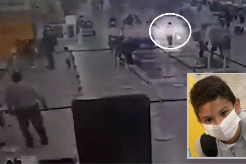 RAKAMAN CCTV menunjukkan detik di mana seorang kanak-kanak berusia sembilan tahun membolosi kawalan keselamatan sebuah lapangan terbang selepas membuat carian di internet mengenai 'cara menyelinap di dalam pesawat'.