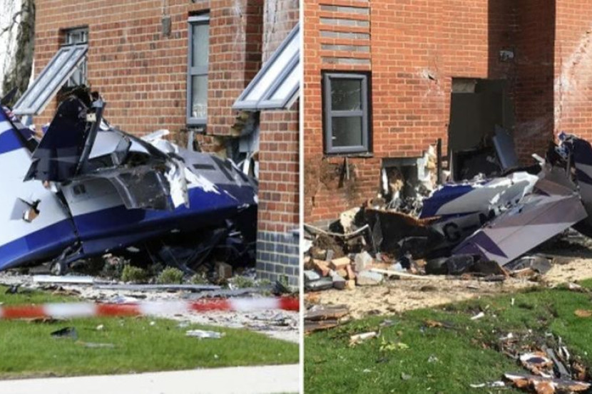 Pesawat tersebut remuk teruk akibat impak perlanggaran selepas ia merempuh sebuah bangunan di Oxfordshire, pada Sabtu.