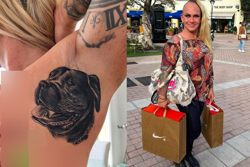 Tatu yang dicacah pada bahagian ketiak sebelah kiri adalah imej seekor anjing pitbull.