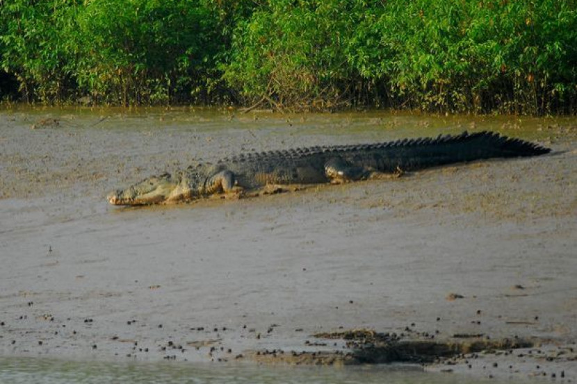 Situasi menjadi panik apabila seekor buaya sepanjang 7 kaki tiba-tiba muncul lalu menyerangnya.