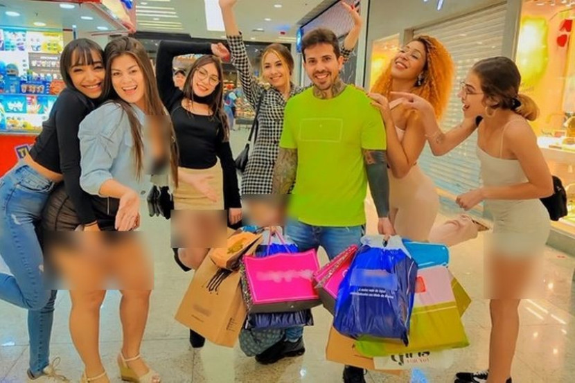 Dia membawa enam daripada lapan isterinya, termasuk Luana Kazaki yang pertama, untuk membeli hadiah sempena majlis romantis itu.