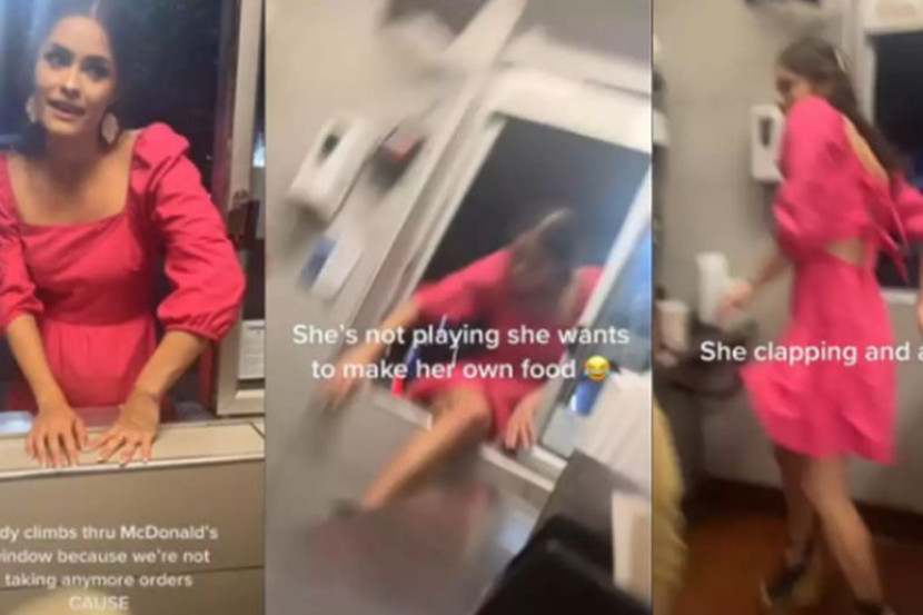 SEORANG wanita bertindak nekad dengan memanjat tingkap di kaunter pandu lalu (drive-thru) restoran McDonald's untuk masuk ke dapur dan menyediakan sendiri hidangan yang dipesannya.