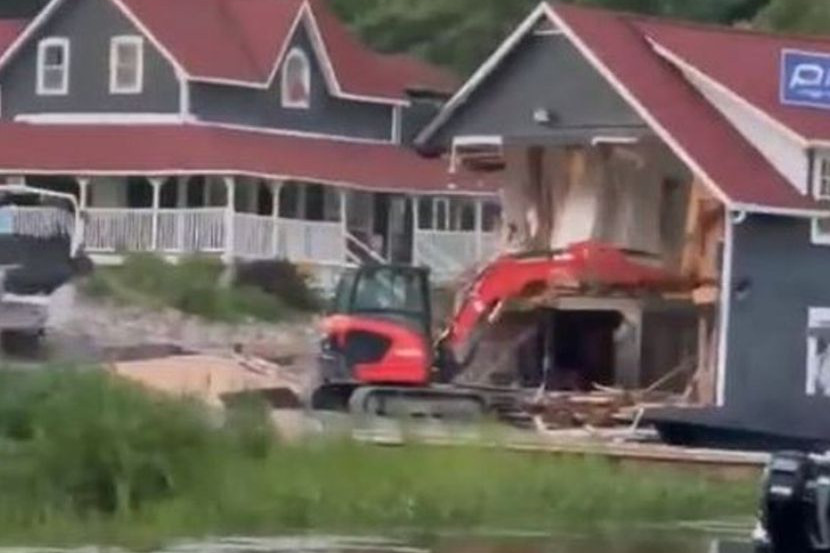 Rakaman yang dikongsi di media sosial memaparkan pekerja lelaki tersebut memandu sebuah jengkaut dan menghancurkan hartanah yang terletak di tepi tasik di Calgary, Kanada.