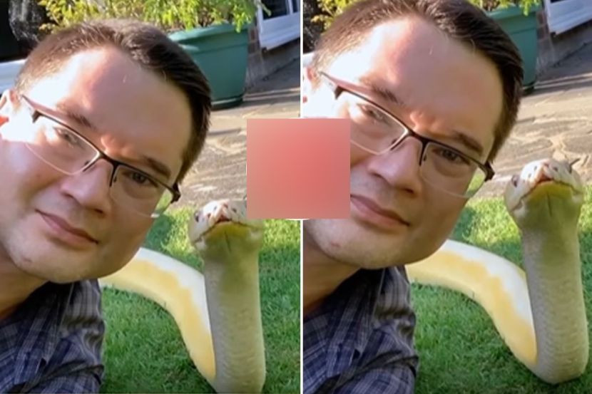 TULAR video di media sosial menunjukkan seorang lelaki berani mengambil swafoto (selfie) dengan seekor ular sawa.
