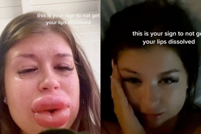 Prosedur bagi membesarkan bibir dikongsikan gadis ini di TikTok miliknya di mana dia mengalami kesakitan beberapa hari selepas disuntik walaupun kelihatan cantik.