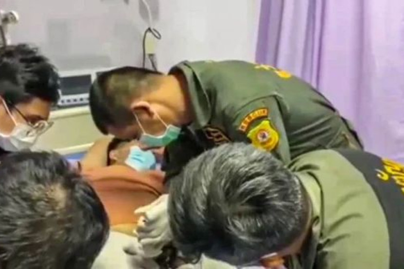 Doktor di Hospital Besar Krungthai tidak dapat membantunya dan terpaksa memanggil anggota bomba tempatan untuk meneruskan prosedur berkenaan.