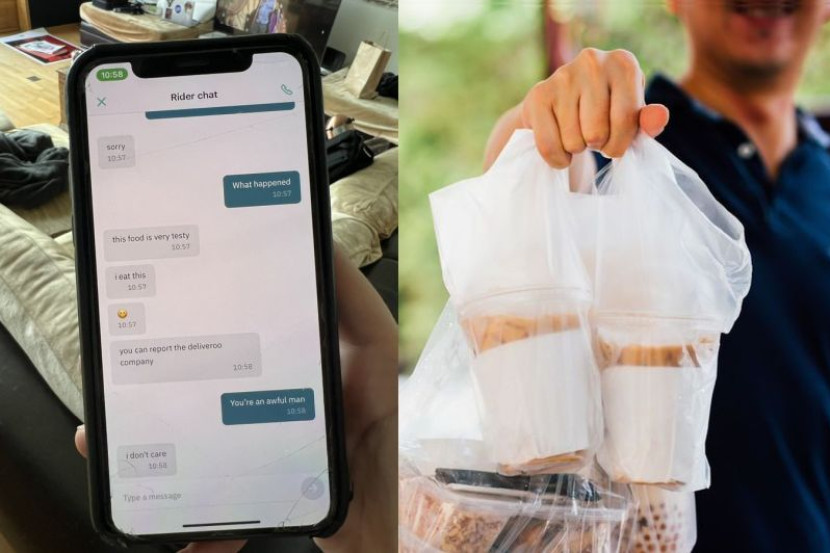 Apabila ditanya apa telah berlaku dan mengapa dia meminta maaf, penghantar menjawab: "Makanan ni sangat sedap. Saya makan, anda boleh lapor kepada Deliveroo."