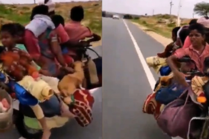 Dalam video itu, dia dilihat membawa lima anak, seorang wanita, dua ekor anjing dan beberapa beg, kesemuanya dengan motosikal.