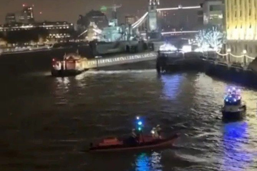 Pasukan bantuan kecemasan bergegas ke tempat kejadian di Sungai Thames sekitar jam 5.30 petang Isnin waktu tempatan.