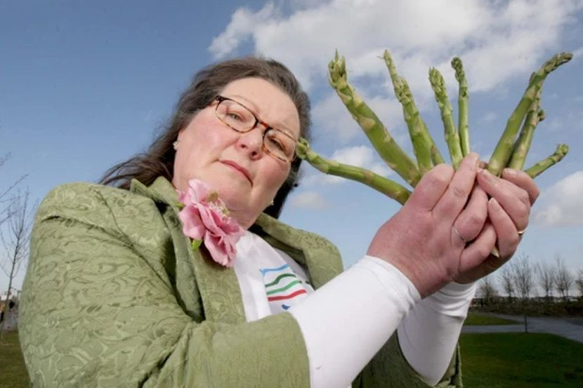 Jemima Packington, 65, mendakwa dapat membuat ramalan mengenai masa depan dengan melemparkan asparagus ke udara dan mentafsir cara tumbuhan itu 'mendarat'.