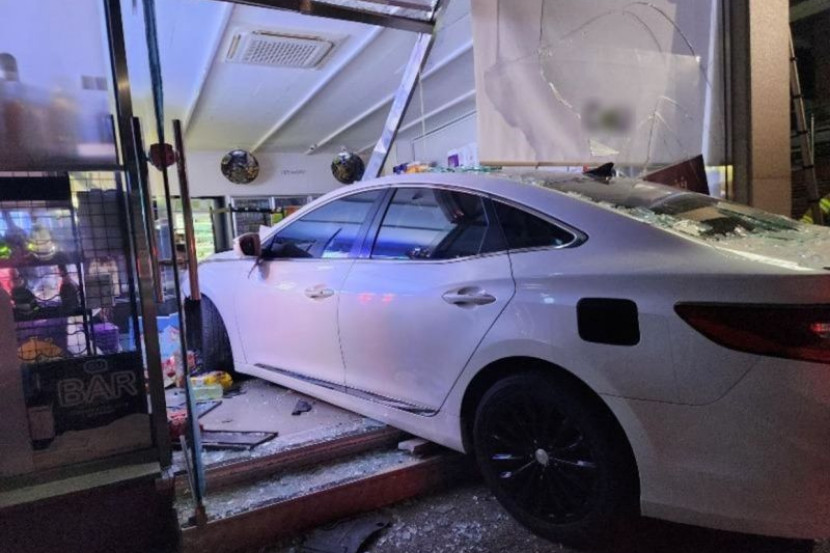 Sebuah kedai serbaneka di Geoje, wilayah Gyeongsang Selatan rosak selepas dirempuh sebuah kereta. Foto: The Korea Herald/ANN