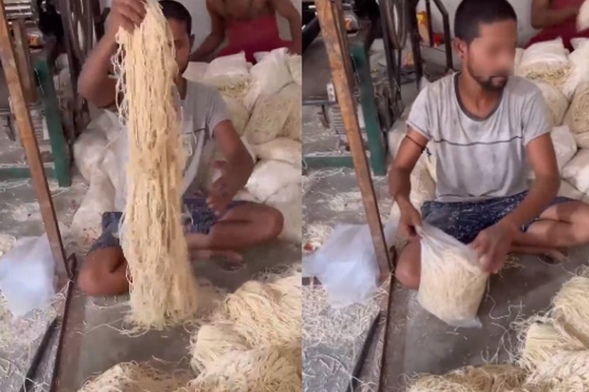 Difahamkan, video dirakam di sebuah kilang pemprosesan mi di India, namun tidak dinyatakan lokasi secara tepat.