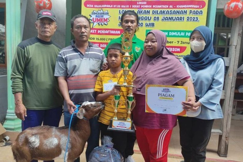 Kanak-kanak ini bergambar bersama keluarganya selepas menang pertandingan bermain lato-lato. Foto: Merdeka.com