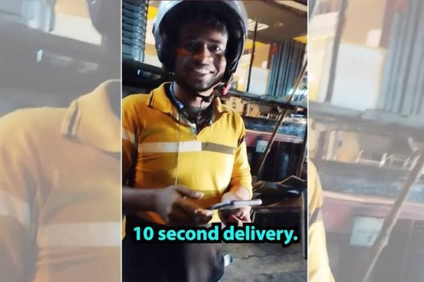 Siapa sangka pesanan tersebut dihantar oleh penghantar makanan kepadanya dalam masa kurang 10 saat.