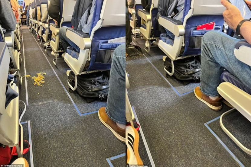 "Mereka enggan meninggalkan pintu pesawat sehingga seseorang membersihkan makanan tumpah," tulisnya dalam ciapan asal.