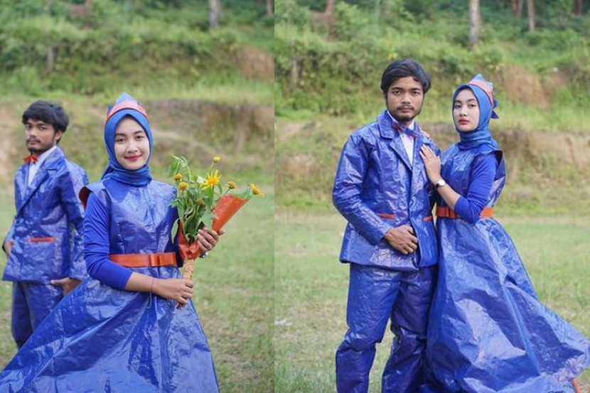 LAZIMNYA pasangan yang ingin melangsungkan pernikahan akan merakamkan detik sesi bergambar pra-perkahwinan (pre-wedding) dengan pelbagai konsep. Ada yang memakai persalinan perkahwinan, pakaian adat mahupun kasual. Namun, berbeza pula dengan konsep persalinan yang dipilih oleh pasangan ini. Tular di media sosial beberapa keping gambar mereka merakamkan foto pra-perkahwinan dengan memakai persalinan yang diperbuat daripada kanvas khemah. Gambar-gambar tersebut mula tersebar luas di media sosial selepas dimuat naik akaun Facebook Khoirul Anam. Kelihatan kanvas khemah direka menjadi persalinan sut dan gaun kembang lengkap dengan mahkota untuk dipakai bakal mempelai. "Pakaian pre-wedding murah dari terpal (kanvas khemah)," tulis Khoirul Anam pada perkongsiannya. Hantaran tersbeut mengundang pelbagai reaksi daripada netizen dengan rata-ratanya meninggalkan komen lucu dan menyifatkan persalinan berkenaan tak ubah seperti baju hujan. Bagaimanapun Khoirul Anam dalam penjelasannya berkata, gambar-gambar tersebut bukanlah foto pra-perkahwinan sebenar sebaliknya ia adalah konten semata-mata. Malah wanita bersamanya di dalam gambar tersebut juga bukan kekasihnya tetapi hanya seorang kenalan. - Wolipop Jadilah sebahagian daripada geng mStar! Follow kami di Telegram, Twitter, TikTok, Facebook, Instagram dan YouTube