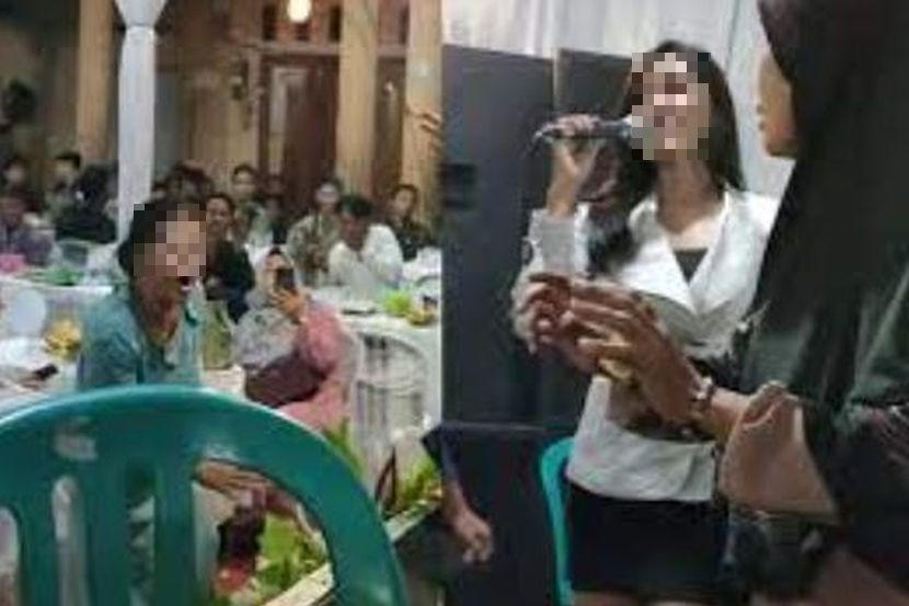Namun, seorang wanita berusia 50-an yang berada di bawah pentas berasa kurang senang melihatnya.