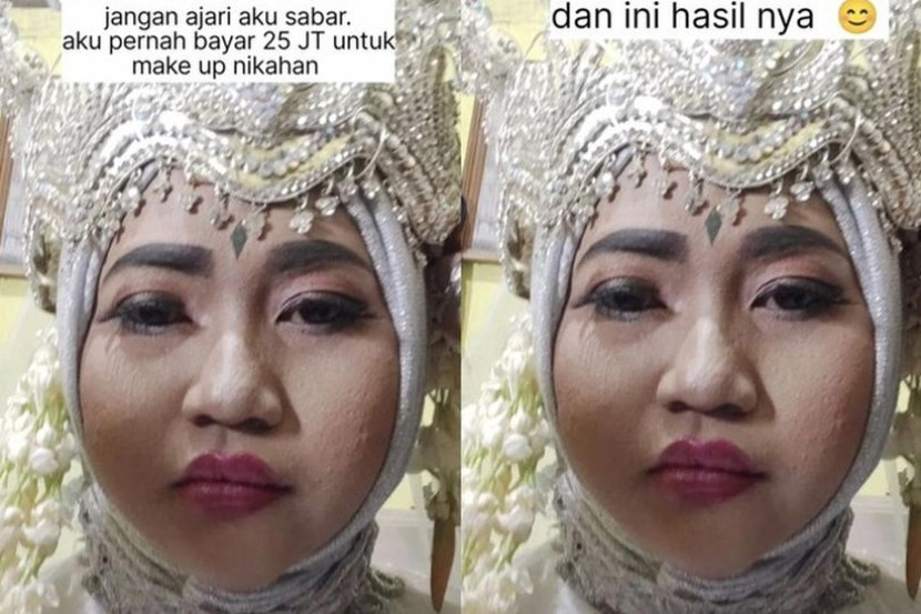 "Jangan ajar saya untuk bersabar. Saya pernah membayar Rp 25 juta untuk solekan perkahwinan dan inilah hasilnya," katanya dengan riak wajah yang sedih.