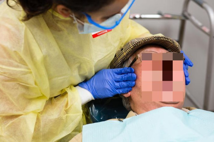 Dia langsung tidak boleh menelan atau bercakap kerana mentol kaca tersangkut di dalam mulutnya dengan bahagian logam tertonjol keluar.