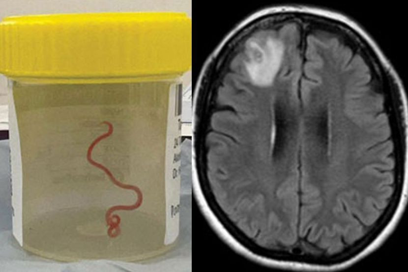 Imbasan pengimejan resonans magnetik (MRI) terhadap otaknya mendapati terdapat helminth motil iaitu cacing gelang parasit yang hidup di lobus hadapan kanan otaknya.