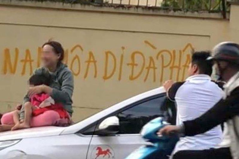 Keadaan itu menyebabkan wanita terbabit memeluk erat anaknya dan duduk di atas bonet kereta bagi mempertahankan diri daripada terus dipukul.