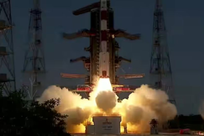 Pelepasan dari landasan pelancaran di Pusat Angkasa Satish Dhawan di Sriharikota.