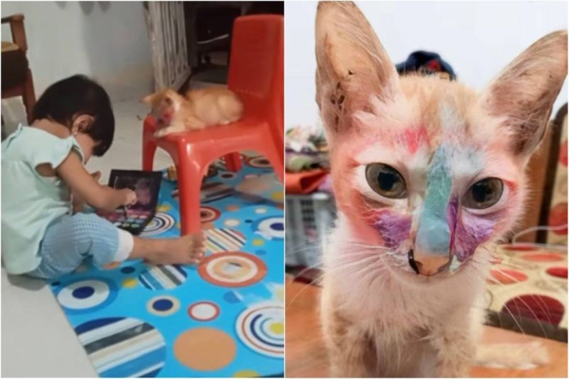 KUCING sebagai haiwan peliharaan sudah tidak asing lagi dan merupakan peneman yang setia. Si bulus kebiasaannya mempunyai pelbagai ragam mencuit hati, yang ada kalanya boleh menyebabkan kacau-bilau. Namun, melalui satu video tular di TikTok, lain situasinya apabila seekor kucing dilihat menjadi 'mangsa' eksperimen solekan seorang kanak-kanak perempuan. Dalam video itu, kucing tersebut yang berwarna oren didudukkan di atas kerusi manakala anak kecil berkenaan pula duduk bersila di lantai menghadap si bulus. Haiwan peliharaan itu dilihat berserah tanpa melawan apabila kanak-kanak berkenaan mencalit solekan pelbagai warna ke muka kucing itu. Kanak-kanak itu memilih beberapa tona warna dari kotak solekan dan mencampurkannya, mirip seorang mekap artis (MUA) yang sedang beraksi. Hasil solekan kanak-kanak itu mempamerkan wajah kucing tersebut berubah warna-warni, seolah baru pulang dari persembahan kebudayaan. Menjengah ke ruangan komen, rata-rata warga maya berasa janggal mengapa kucing sering berlembut apabila dikacau oleh kanak-kanak. "Masih menjadi misteri. Kenapa haiwan peliharaan selalu pasrah jika bersama anak kecil? Kucing di Indonesia memang friendly. "Kucing pasrah asalkan perut kenyang dan tidak ditinggalkan. Itulah kehidupan," kata sebahagian warga maya. Jadilah sebahagian daripada geng mStar! Follow kami di Telegram, Twitter, TikTok, Facebook, Instagram dan YouTube
