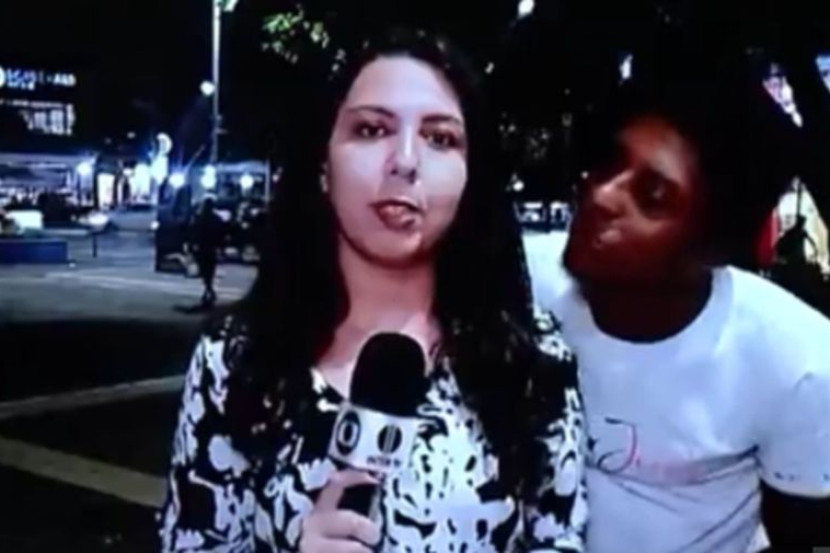 SEORANG wartawan yang sedang mengendalikan siaran langsung dikejutkan dengan tindakan seorang lelaki yang secara tiba-tiba merangkul dan mahu menciumnya.