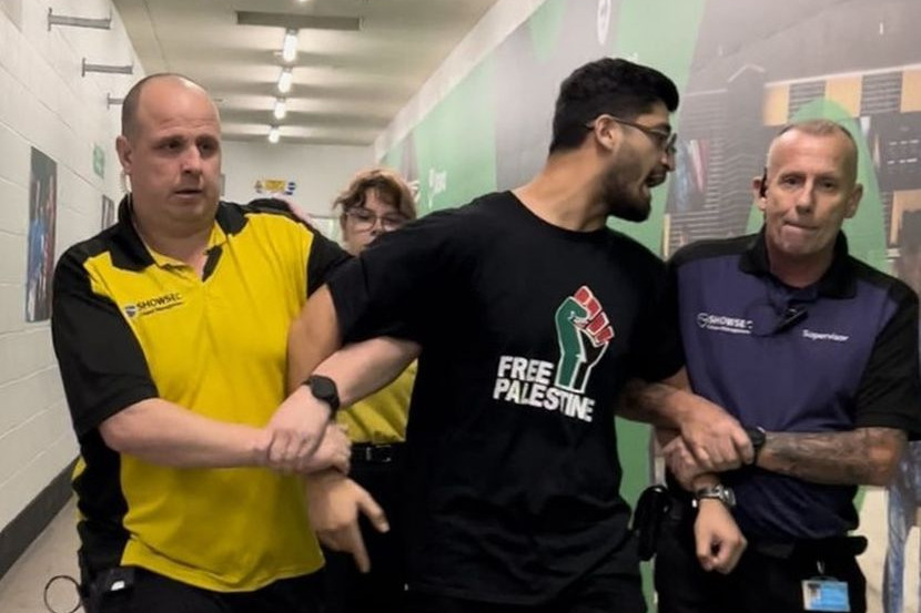 BINTANG media sosial Lord Aleem dihalau keluar daripada pertarungan tinju KSI lawan Tommy Fury pada Sabtu kerana memakai baju-T 'Free Palestine'. Aleem Iqbal, yang mempunyai lebih 1 juta pengikut merentasi platform dalam talian, berkongsi video konfrontasinya dengan pengawal keselamatan di Manchester. "Kenapa saya tidak boleh memakainya?" Iqbal kedengaran memberitahu pengawal, yang membuat beberapa percubaan untuk menutup kamera yang merakam kejadian itu dengan tangannya. Pempengaruh media sosial itu berkata pada Ahad bahawa dia diberi pilihan sama ada untuk menanggalkan baju yang dipakai atau meninggalkan lokasi. Dia kemudiannya menyiarkan video di Instagram menunjukkan dia dikeluarkan secara paksa oleh empat pengawal keselamatan. Dalam kapsyen itu, dia menegaskan bahawa pengawal tidak menimbulkan isu apabila selebriti media sosial Logan Paul sedang mengibarkan bendera AS di gelanggang tinju. Beberapa pengguna di X berkongsi reaksi mereka terhadap kejadian itu. “Penghormatan yang besar kerana berdiri teguh. "Saya fikir kita tinggal di negara yang bebas dan demokratik," ujar beberapa warga maya. - Arab News Jadilah sebahagian daripada geng mStar! Follow kami di Telegram, Twitter, TikTok, Facebook, Instagram dan YouTube