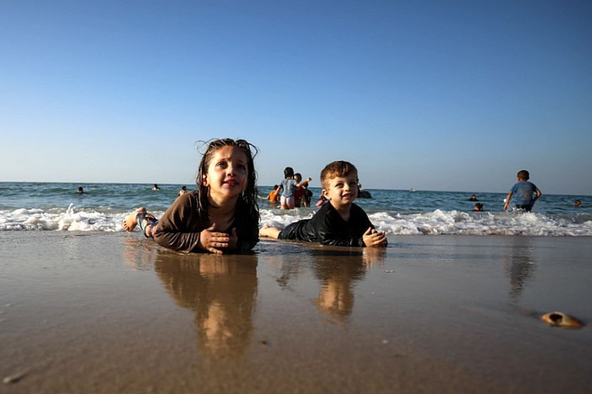 Penduduk Palestin mengambil kesempatan daripada gencatan senjata selama empat hari, dengan pergi ke pantai. -Gambar Al Jazeera