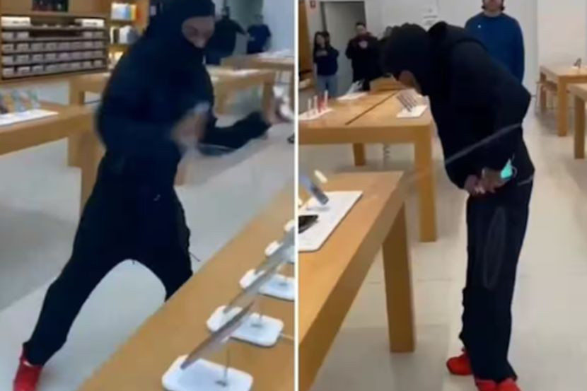 RAKAMAN video memaparkan seorang lelaki bertopeng yang selamba melakukan rompakan di sebuah kedai Apple Store pada waktu siang, tular di platform media sosial, baru-baru ini.