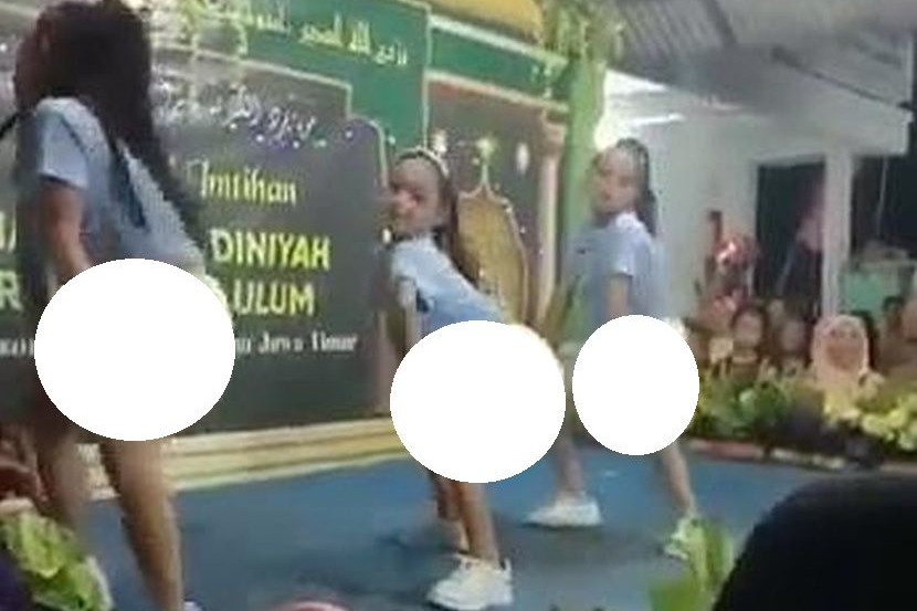 MEDIA sosial kecoh susulan penularan video yang memaparkan tiga remaja perempuan menari dengan aksi goyang 'gerudi', yang dilaporkan berlaku di sebuah madrasah di Pasuruan, Jawa Timur.