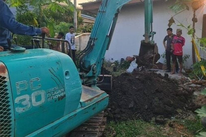 'Kubur' sedalam satu meter dan 80 sentimeter lebar itu digali sebelum menemukan satu guni mengandungi mayat mangsa yang telah reput.