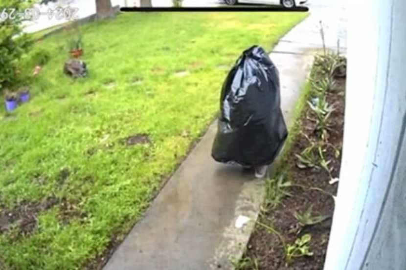 Begitulah kisahnya apabila seorang individu tidak dikenali sanggup menyamar sebagai beg sampah untuk mencuri bungkusan mel yang ditinggalkan di depan pintu masuk sebuah kediaman.