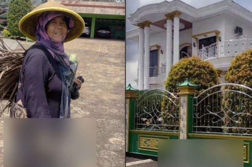 Namun, siapa sangka disebalik penampilannya yang serba sederhana, wanita itu merupakan pemilik rumah mewah di kampung tersebut.