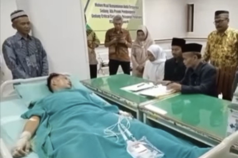 Meskipun berada dalam keadaan lemah kerana baru selesai pembedahan, pengantin lelaki itu melafazkan akad nikah dengan lancar dan mereka disahkan sebagai suami isteri. - Okezone