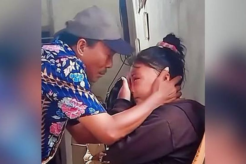 Video yang menunjukkan si bapa menangis itu tular di media sosial.