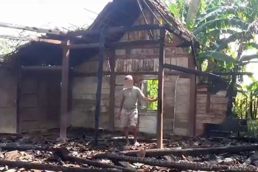 Penduduk kampung cuba memadamkan kebakaran, tetapi api marak dengan cepat sehingga rumah dan kandang kambing diperbuat daripada kayu musnah terbakar.