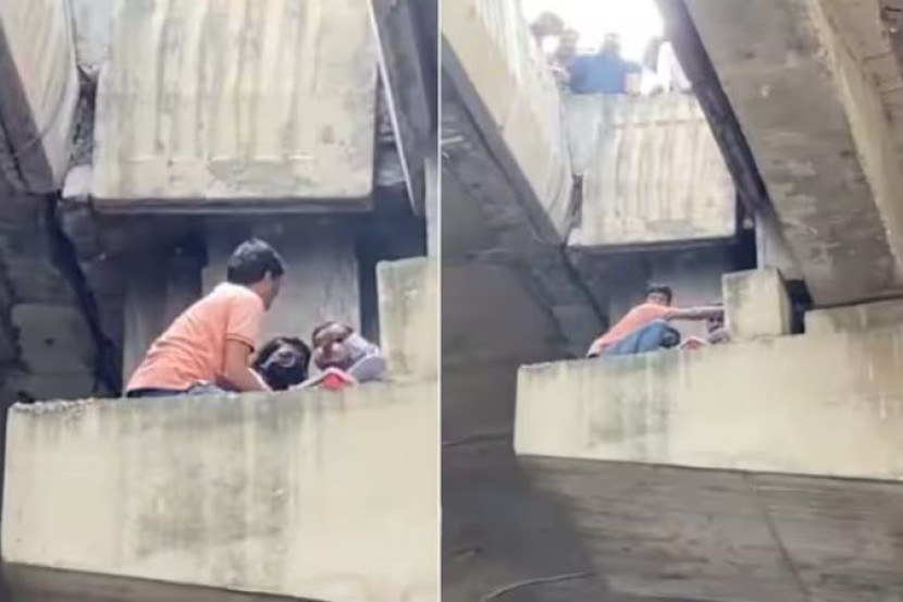 Dua lelaki cuba menyelamatkan wanita yang terperangkap di tiang lebuh raya bertingkat. - Gambar agensi